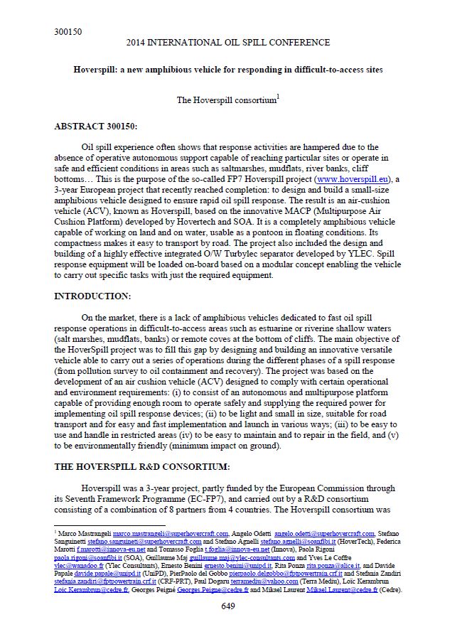 (International Oil Spill Conference, 2014)