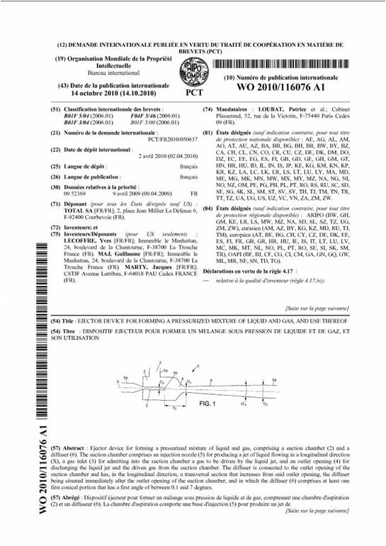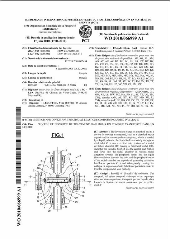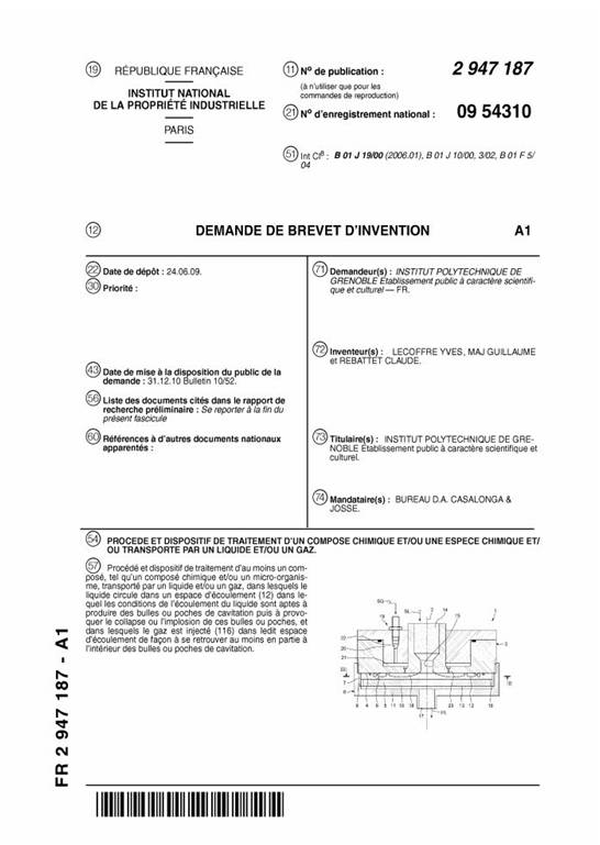 Quelques brevets issus de nos développements
