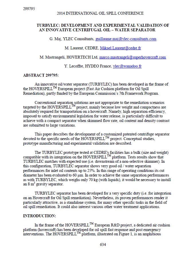 TURBYLEC: development and experimental validation of an innovative centrifugal oil-water separator